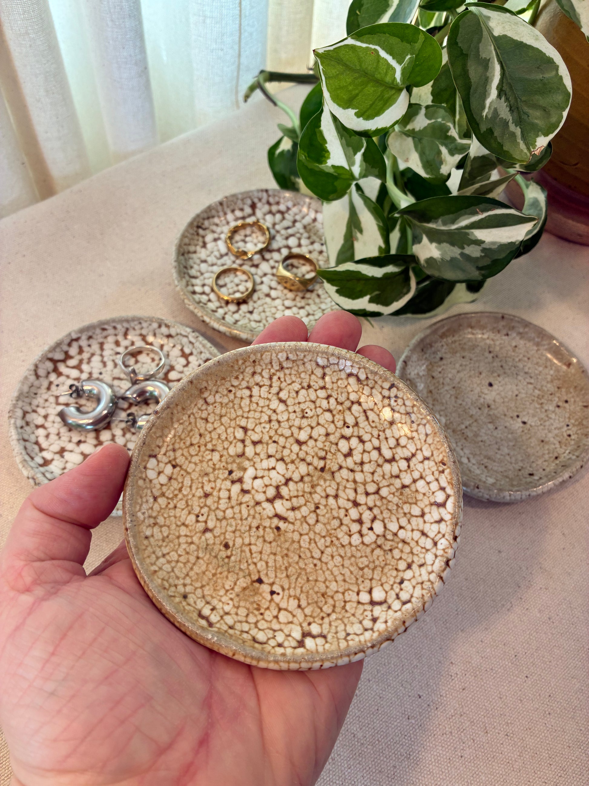Keep your space organized with the Desert Crackle Trinket Dish. Featuring a white crackle glaze that shrinks faster than the clay it decorates, revealing a unique, highly-varied finish. This petite vessel is perfect for your hosting small treasures like jewelry or little knickknacks like bobby pins and spare buttons. It brings a sweet and simple touch of creativity and craftsmanship to any surface.
