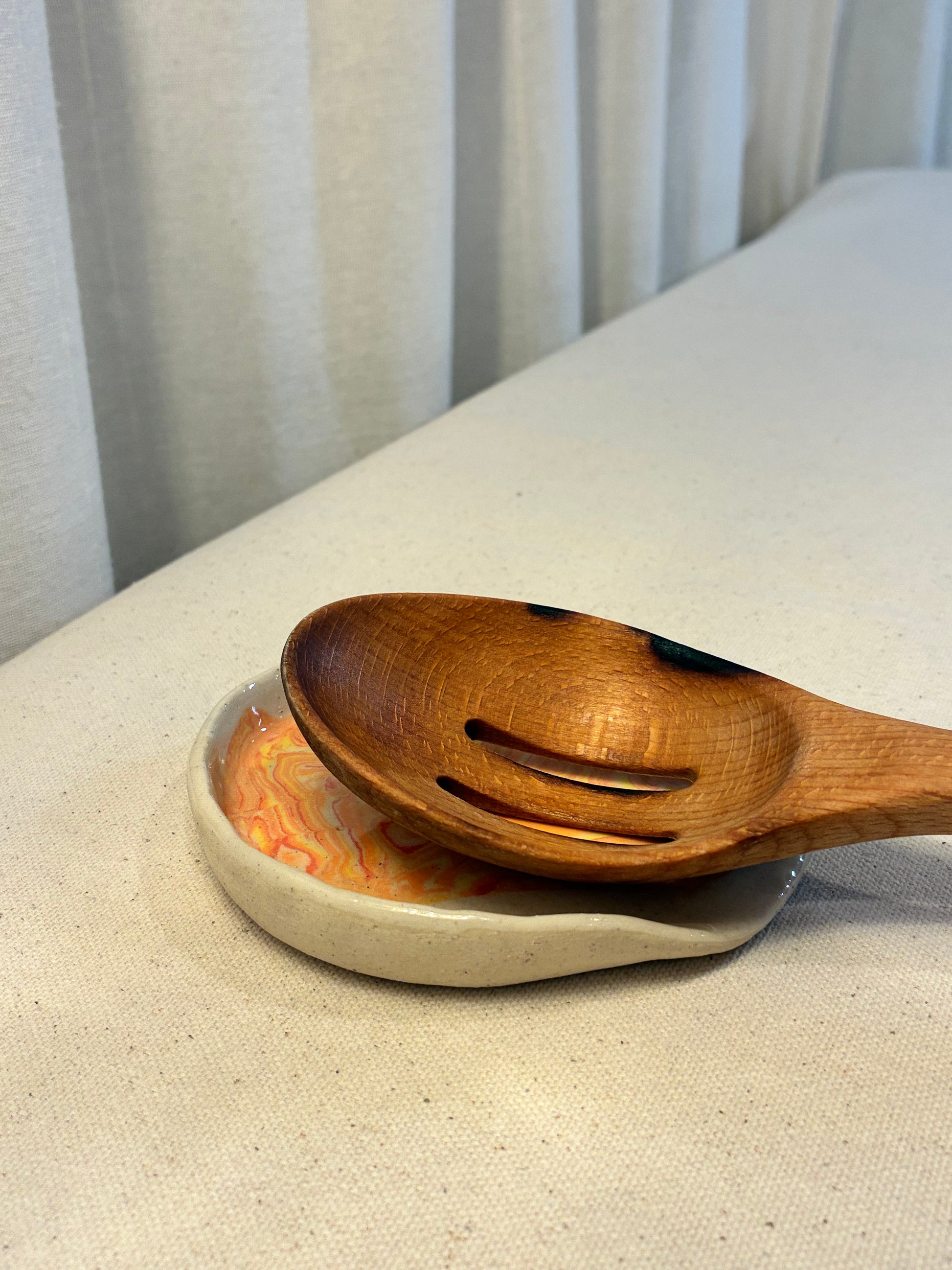 Catch drips with style! This handcrafted nerikomi spoon rest brings artisan flair to your kitchen counter. Each piece features the distinctive swirled clay patterns that make nerikomi ceramics so mesmerizing—no two are exactly alike. Perfect for resting wooden spoons, brushes, or small utensils while you cook. A functional work of art.